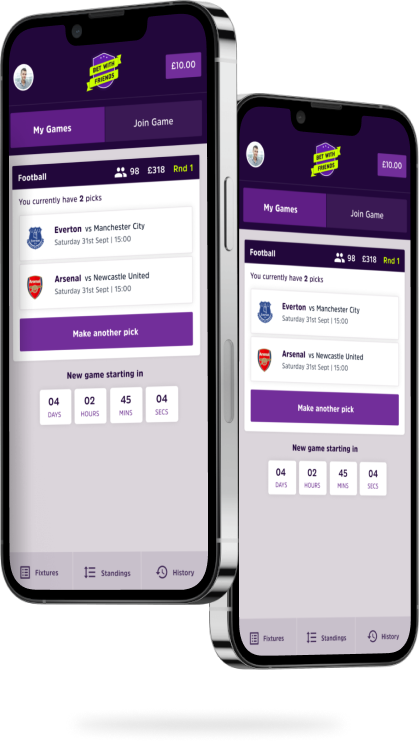 Bet With Friends is a Last Man Standing style football game, where if you choose a winning team, you’ll be though the next round with a chance to win the pot.